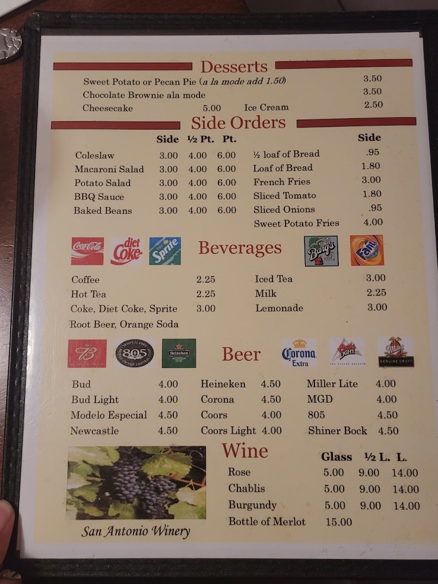 It was perfect barbecue baby rips for me So delicious. bread is so soft and warm. Salad is also fresh and tasty. Coke can be refilled. The price is also reasonable. There are many to go orders (very popular) Omg. I feel like I am in Texas trip.
